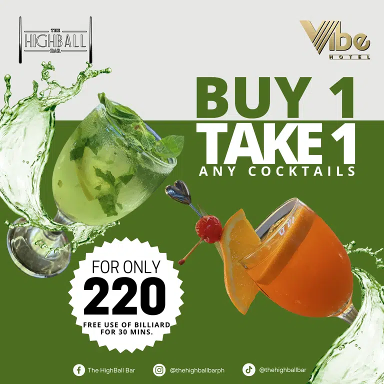-Buy 1 Take 1 on any Cocktails.